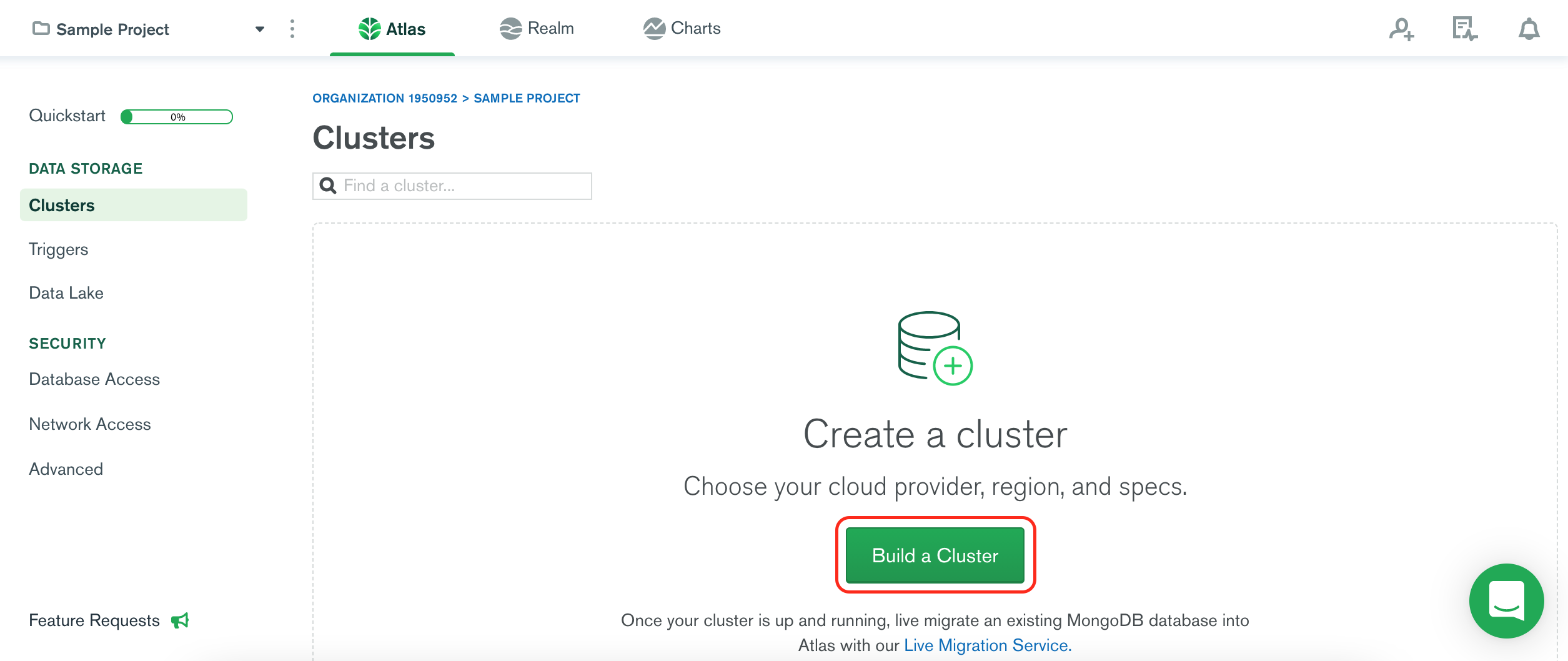 아직 우리가 만든건 껍데기에 불과하니 [Build a Cluster] 를 선택해 본격적인 데이터베이스를 만들어 보자.