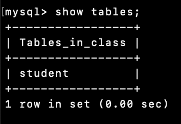 USE Class; # Class 라는 이름의 데이터베이스 선택