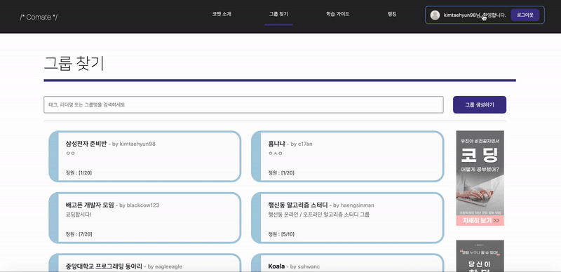 컴포넌트 렌더링을 마친 후 useEffect 훅으로 getGroupList 함수를 호출해 그룹 리스트 상태값을 초기화해주고 있습니다.