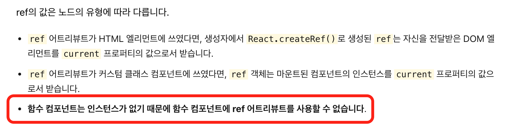 바로 함수 컴포넌트의 ref는 애초에 존재하지 않기 때문입니다.