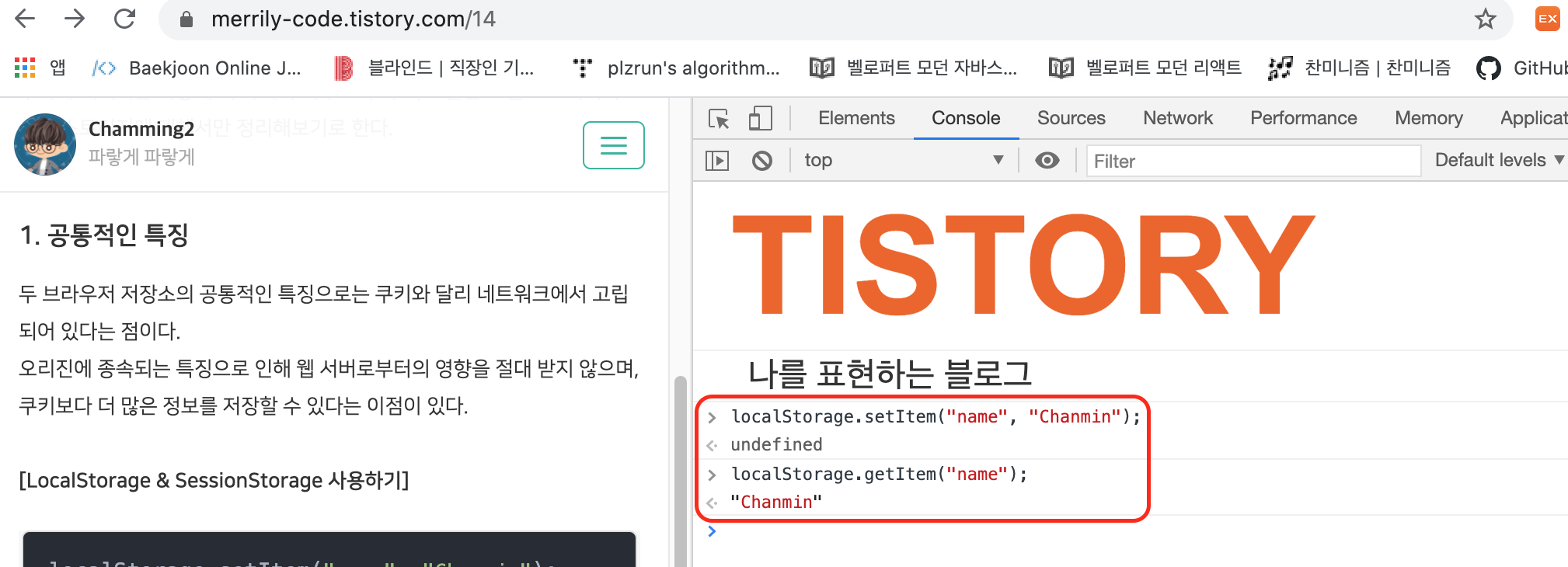 localStorage.setItem("name", "본인 이름");