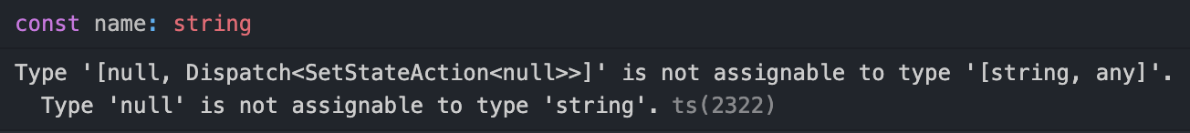 const [name, setName]: [string, any] = useState(null);