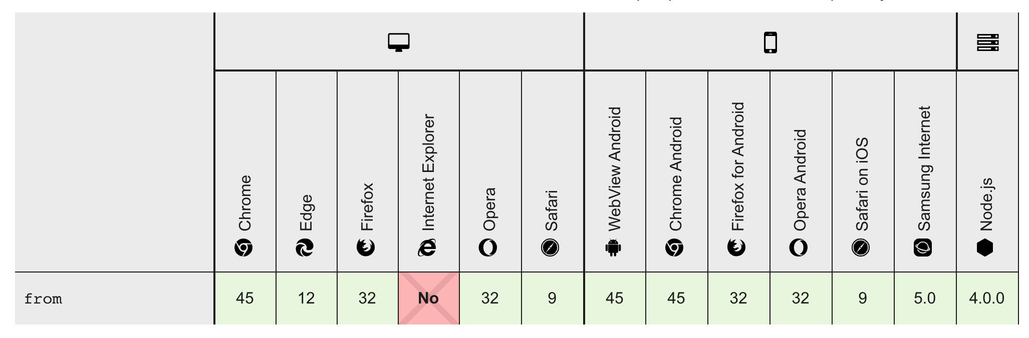 다만 한 가지 단점이 있다면, Array.from()은 ES6에 새로 추가된 문법이므로 구세대 브라우저를 지원하기 위한 폴리필이 필요합니다.