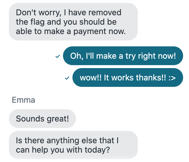 아무래도 미국은 새벽 2시라 그런지, 대기열에는 딱 한명밖에 없었고 30초가 조금 안되어 바로 상담원님이 채팅에 들어와 주셨습니다. 👍