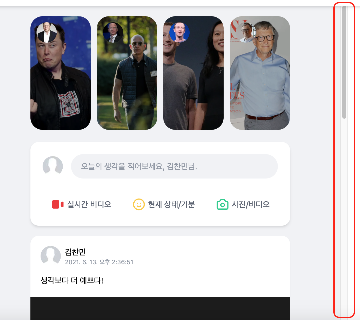// scrollbar-hide 클래스명을 활용한 모습입니다.