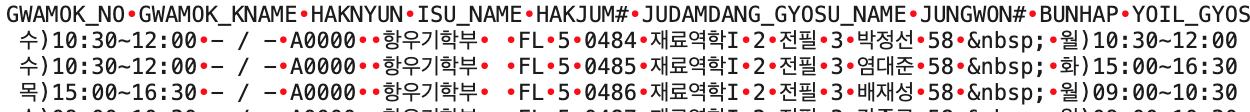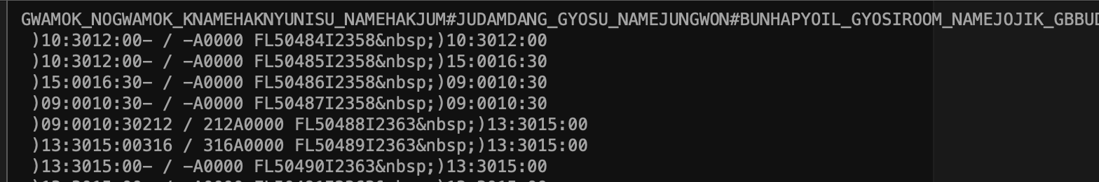 아무튼 공사를 앞두고 어찌저찌 과목 정보까지는 가져오는데 성공했는데, 뭔가 쎄한걸 느꼈습니다.