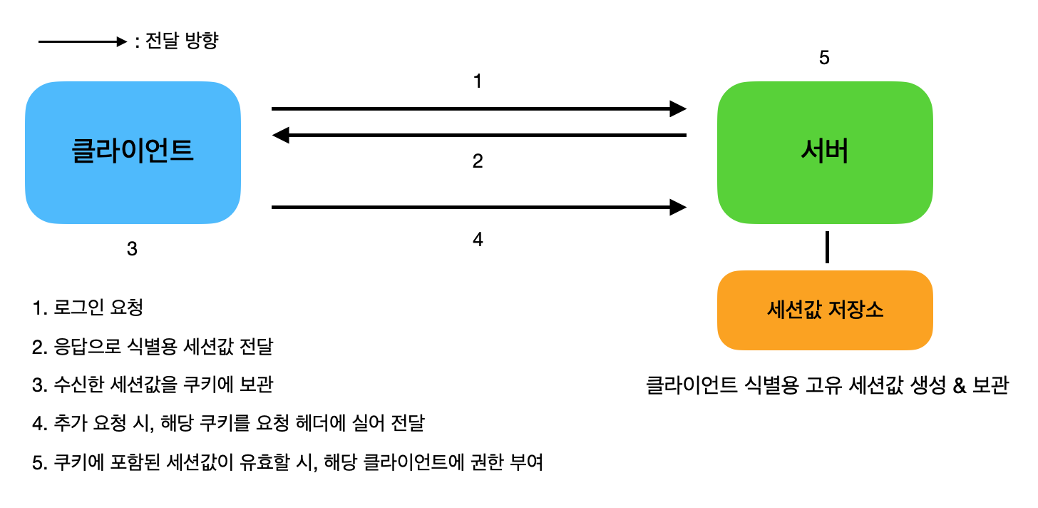 - 클라이언트는 세션값을 수신하고 쿠키에 담아 보관합니다.