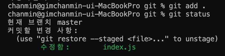 이럴 때는 git reset <언스테이징할 파일명> 으로 특정 파일의 스테이징을 취소하거나, git reset 커맨드로 모든 파일의 스테이징을 취소할 수 있습니다.