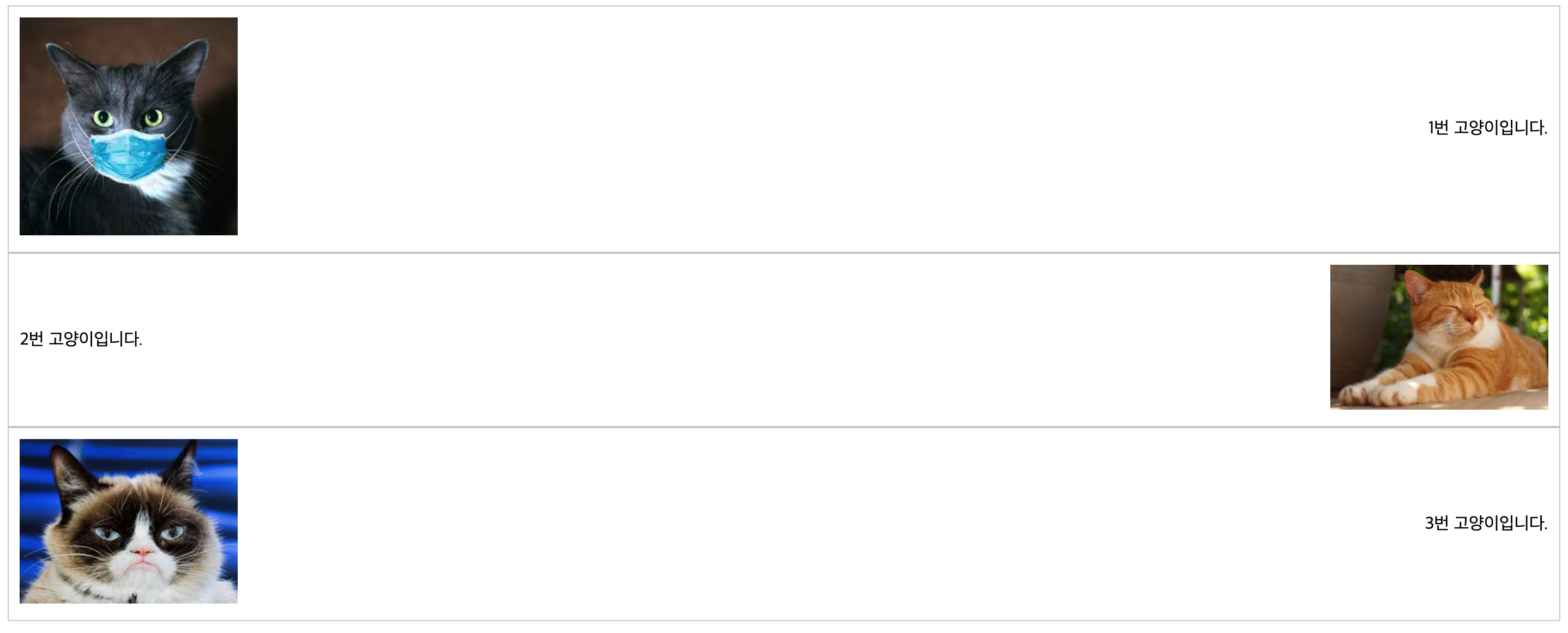 이제 원하던 대로 고양이의 사진이 위, 설명이 아래에 위치하는 모습입니다.