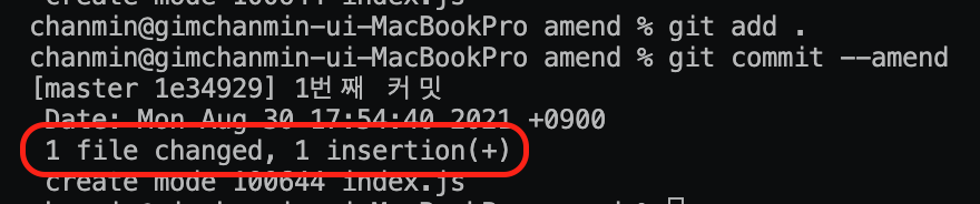 변경사항을 만들고 git add . 를 통해 수정한 내용을 스테이징한 다음, git commit --amend 로 커밋 메시지를 수정하면 변경된 코드와 커밋 메시지가 이전 커밋에 반영됩니다.