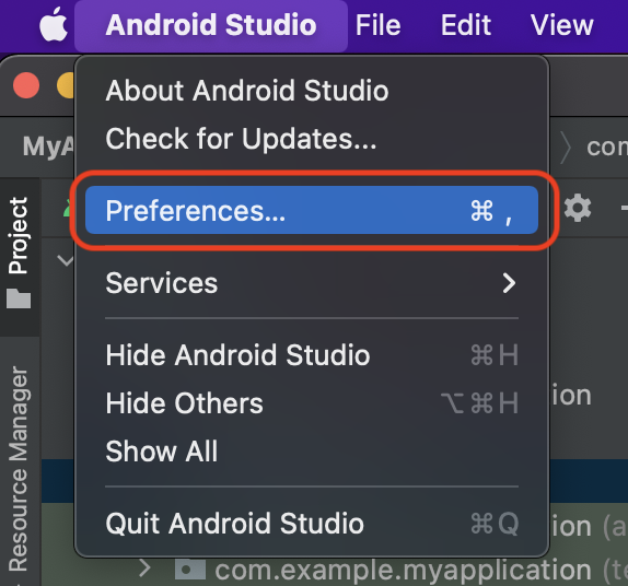 1. 안드로이드 스튜디오 설정 진입 (영문명 : Preferences)