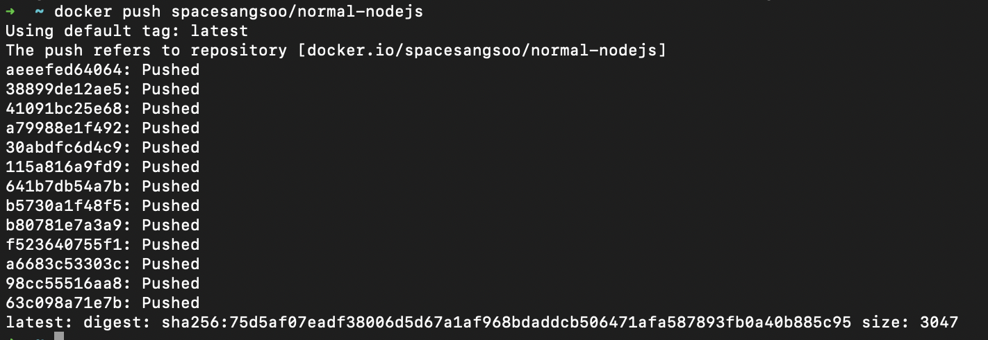 이제 로컬에 이미지가 존재하지 않는다는 에러 없이, 푸시가 잘 수행되는 모습입니다. 🙂