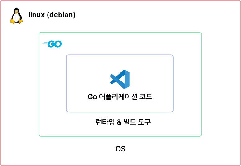 그런데 콘솔에 "hello world" 를 출력하는 정말 간단한 코드조차 빌드하면 자그마치 1GB에 달하는 이미지가 생성되는데요, 생성된 이미지는 아래와 같은 구조를 갖게 됩니다.