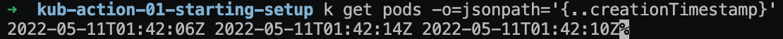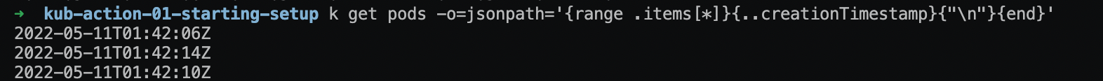 - creationTimestamp 라는 속성만을 출력하는 모습