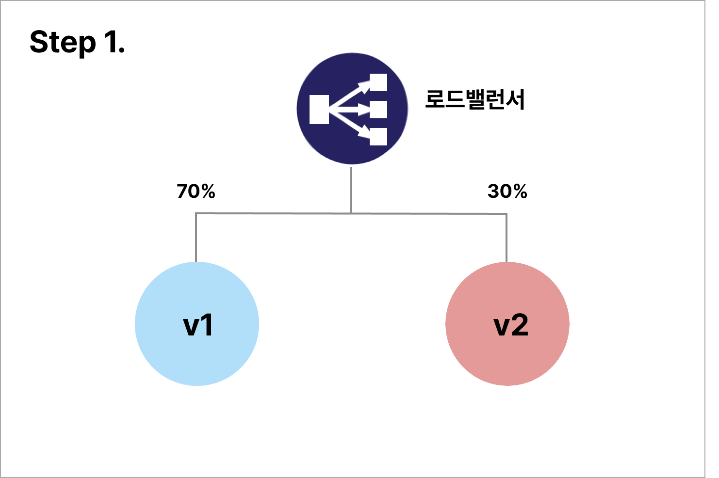 카나리 전략에서는 구버전과 신버전에 트래픽을 분산하고, 신버전으로 들어가는 트래픽의 양을 서서히 늘려 나가며 모니터링 및 피드백을 통해 최종 배포 결과를 결정합니다.