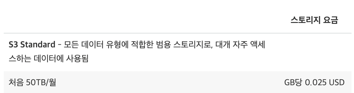 - AWS S3 : 스토리지 비용 2(GB) * 0.025$ / 대역폭 무료 = 약 100원 안팎
