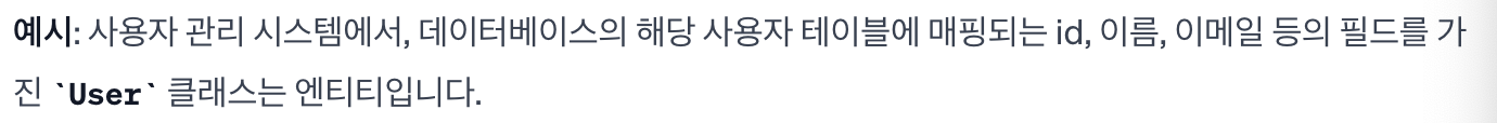 엔티티는 데이터베이스의 테이블을 나타내며, ORM 도구가 데이터베이스의 레코드를 조작하는데 사용한다.