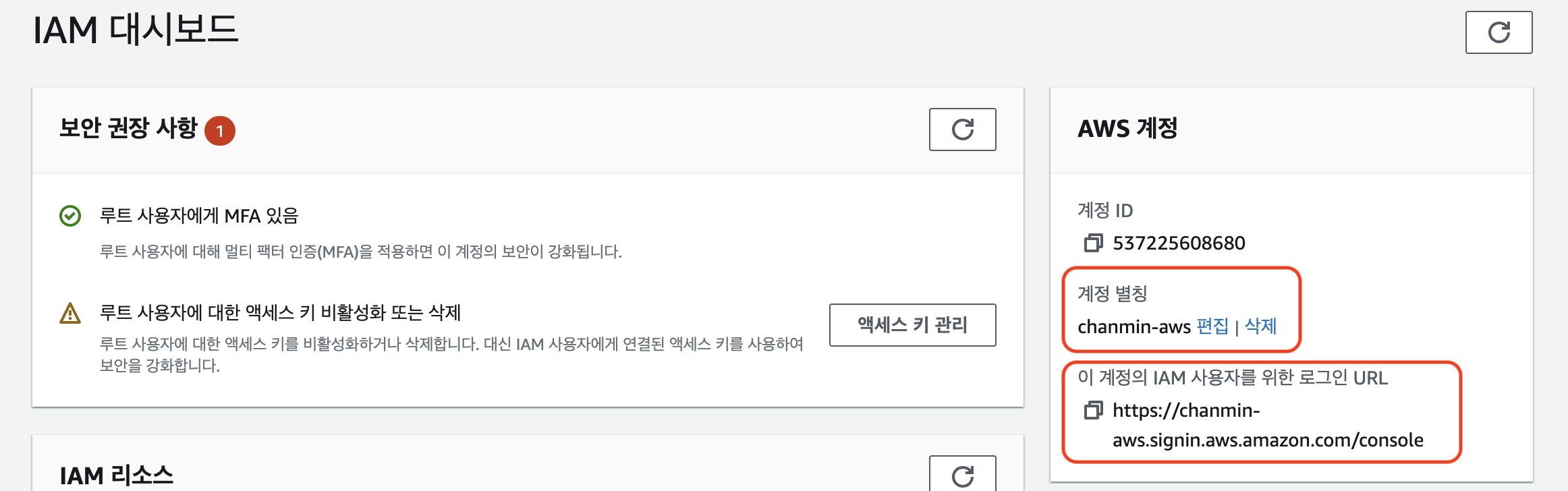 - AWS에 가입하면 루트 계정이 생성되는데, 루트 계정은 계정을 생성할 때만 사용되어야 한다.