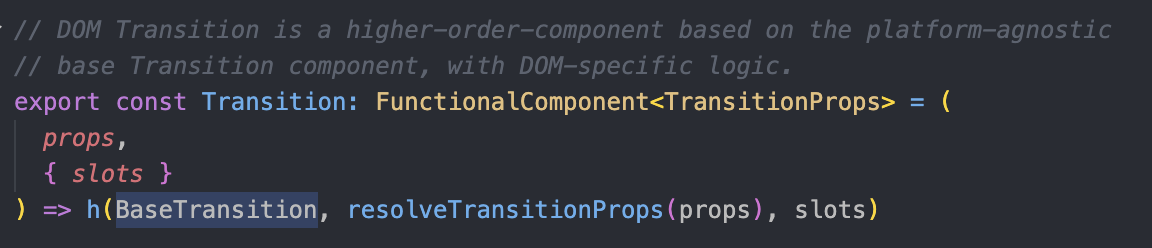 그리고 Vue의 <Transition> 유틸 컴포넌트는 다음과 같이 구현되어 있다.