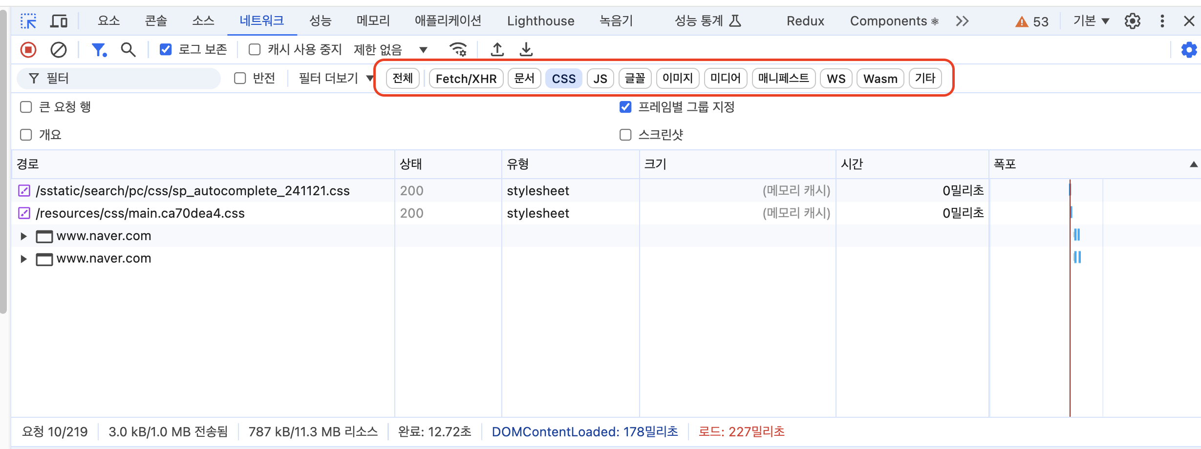 그동안은 성능을 디버깅하기 위해 네트워크 탭에 필터를 걸어가며 리소스를 조회해 왔는데, 저런 물건이 데브툴에 있었다니.