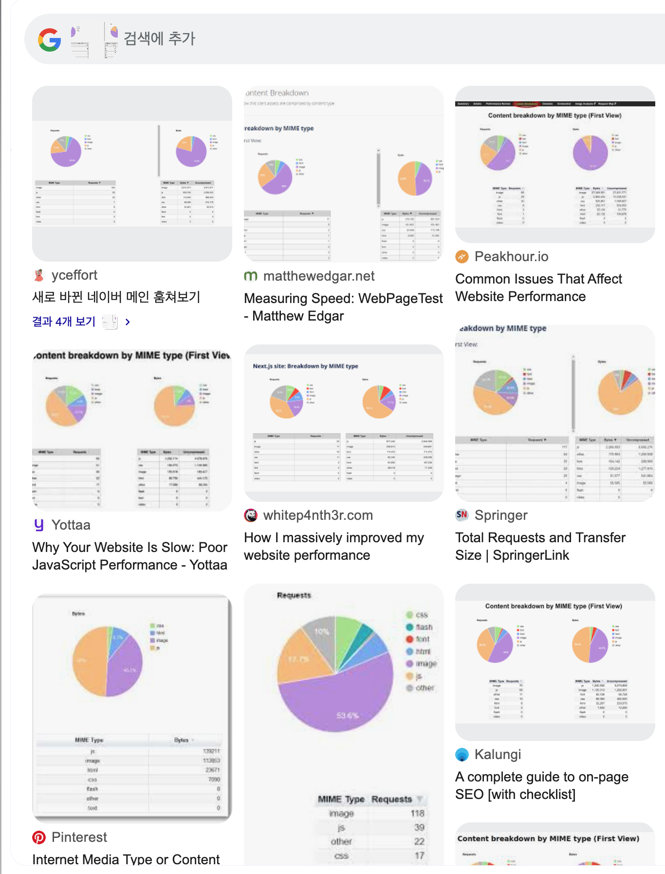 다행히 구글 렌즈로 이미지를 검색해 이것이 "WebPageTest" 라는 도구로 생성된 차트임을 알 수 있었는데, 라이트하우스와 비슷한 기능을 제공하지만 WebPageTest 쪽이 조금 더 내가 찾던 도구에 가깝다고 느껴졌다.