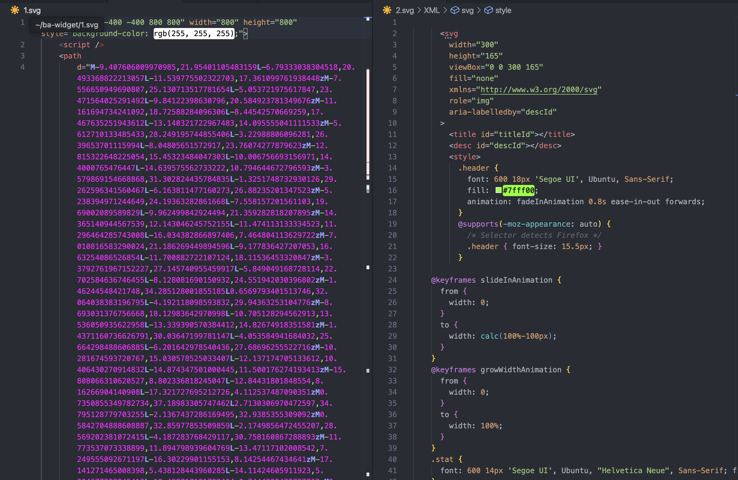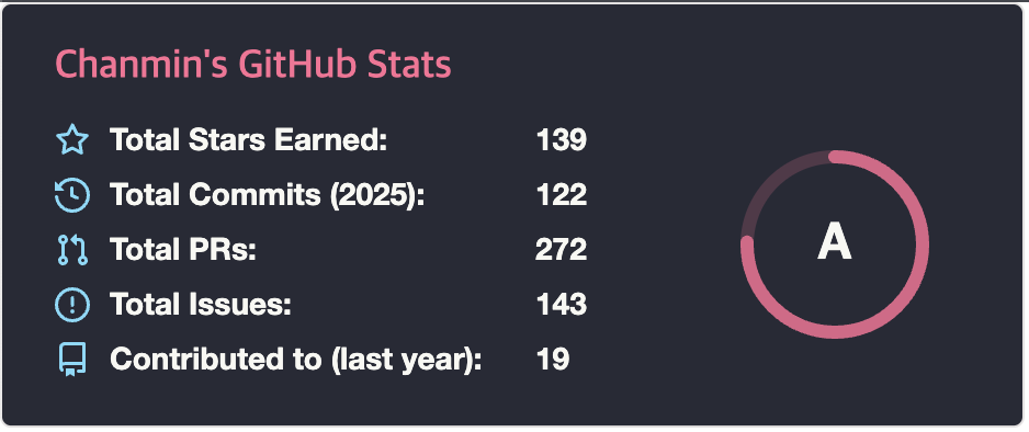 github-readme-stats 프로젝트는 URL에 진입하면 SVG가 이미지 형식으로 떨어지는데, SVGRenderer가 씬을 SVG로 치환해준 결과물은 보통의 SVG와 뭔가 다른 느낌이다.