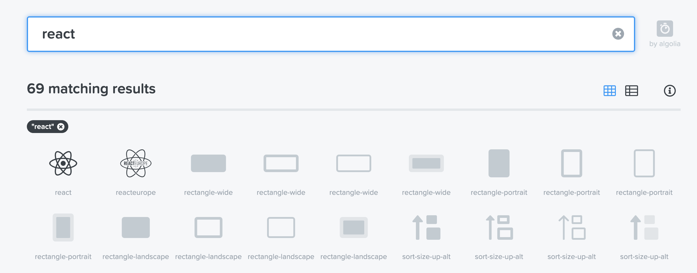 FA 웹사이트로 들어가면 상단 검색창에서 원하는 아이콘을 검색할 수 있습니다.