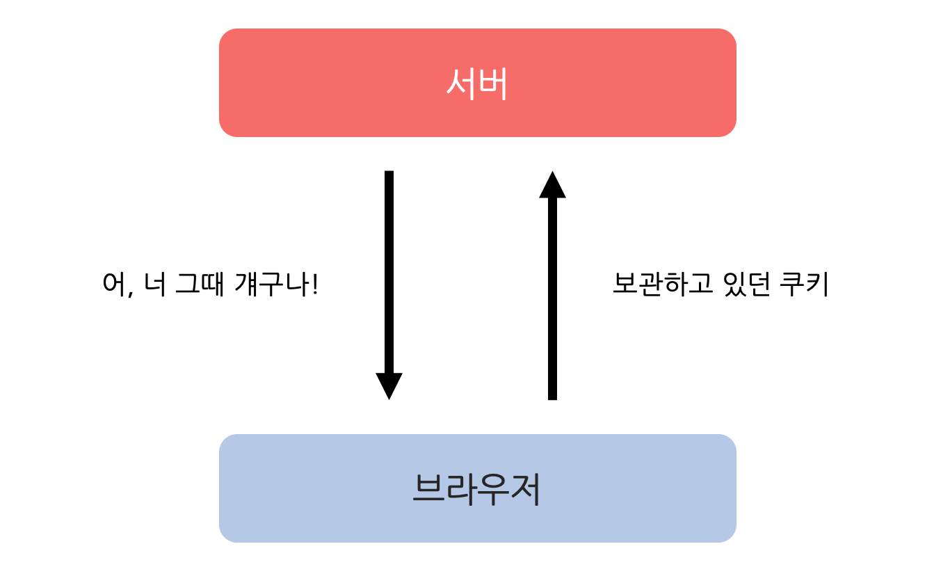 서버는 브라우저에 쿠키를 전달하고, 브라우저는 쿠키를 저장해 두었다가 다음 번 요청부터 보관하고 있던 쿠키를 서버에 전달합니다.