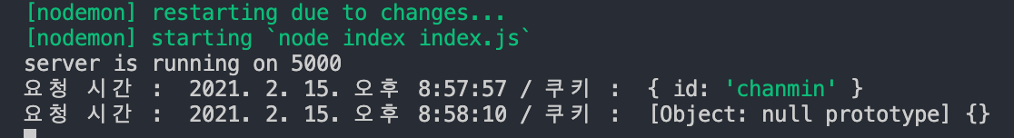 //res.setHeader("Set-Cookie", ["id=chanmin"]); -> res.cookie와 동일한 역할입니다.