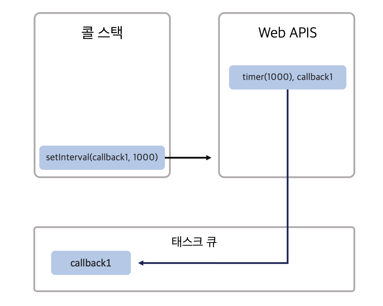(* 물론 동기적인 코드는 적재와 동시에 처리되며, 내부에서 호출되거나 콜백이 존재하는 경우에만 위 그림처럼 쌓이게 됩니다.)