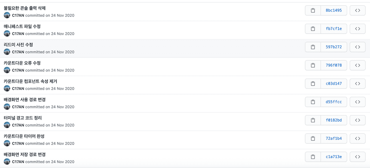 지난 가을에 진행한 항공대 종강시계 프로젝트에서 남긴 커밋 기록입니다.