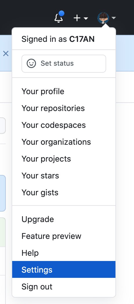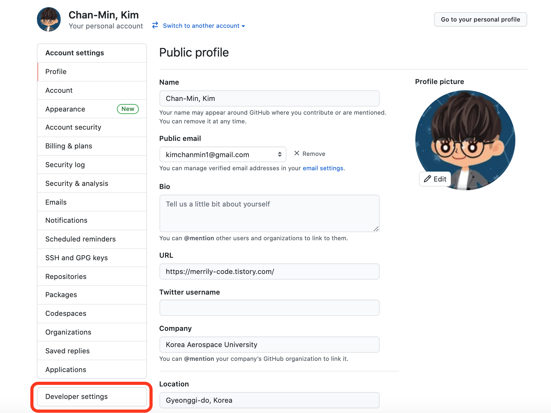 이를 해결하기 위해 PAT(Personnal Access Token) 을 발급받아 요청 한도를 늘려야 하는데요, 먼저 개발자 설정 메뉴로 진입합니다.