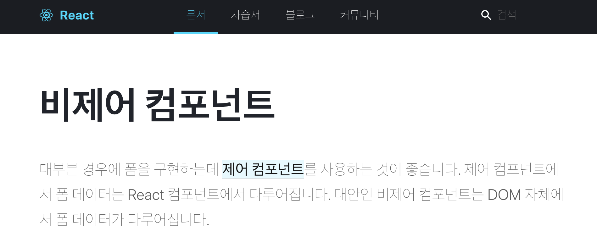 사실 리액트 공식 문서에서조차 폼을 구현할 때 제어 컴포넌트를 활용할 것을 권장하고 있습니다.