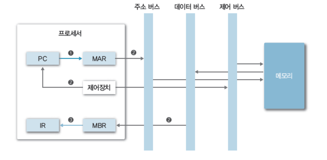 - IR (명령어 레지스터) - 현재 실행할 명령어를 저장해둔다.
