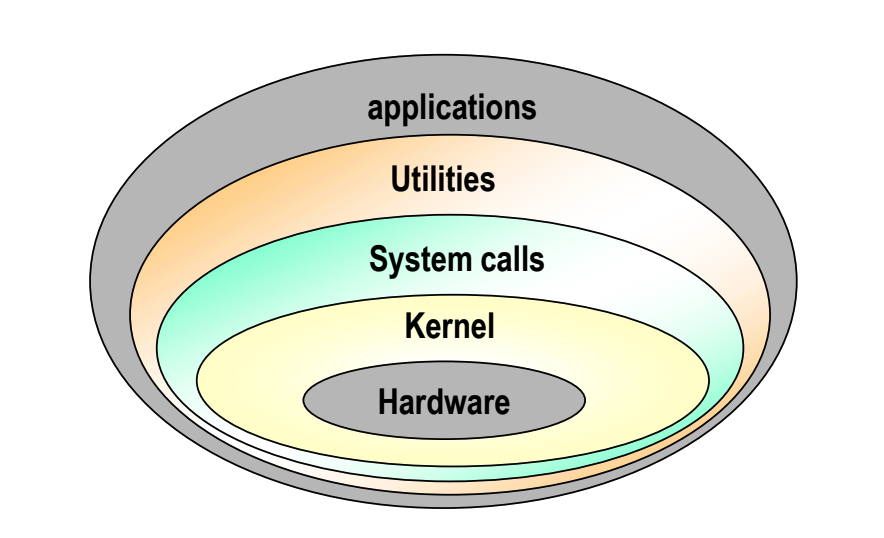 - 단일 구조에서는 커널에 모든 모듈을 때려박았다면, 계층 구조에서는 계층을 나누고 각자 다른 업무를 담당하도록 구성한다.