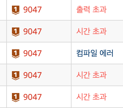바로 이래서 시간 초과를 만나게 되는 건데요, 따라서 연산 결과 문자열이 4자리 미만일 경우에는 앞에 "0" 을 채워주는 작업이 필요합니다.