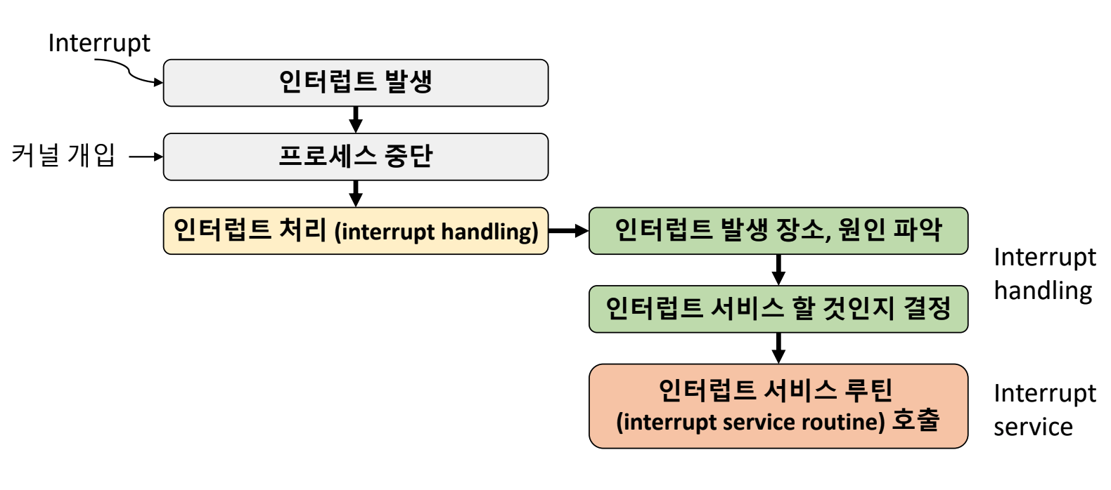 - 간단하게, 인터럽트가 발생하면 일단 멈추고 이유를 물어본다. ("야, 왜 쳤어? 일단 이유나 들어보자")