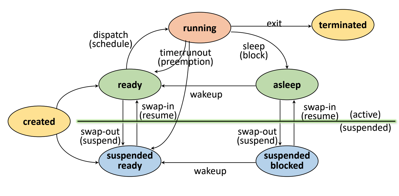 - ready 상태에서 메모리를 빼앗기면 suspended ready