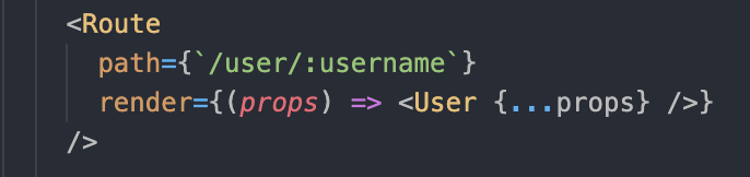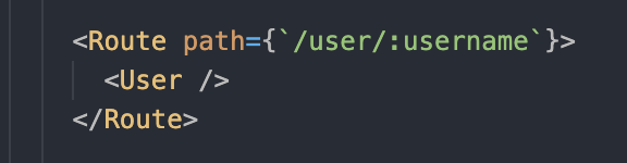 경로에 따라 렌더링되는 컴포넌트를 지정할 때, username 처럼 동적으로 부여되는 값은 match.params를 통해 사용할 수 있습니다.