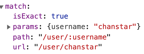 - 동적 경로는 match 객체의 params 객체를 통해 추출할 수 있다.